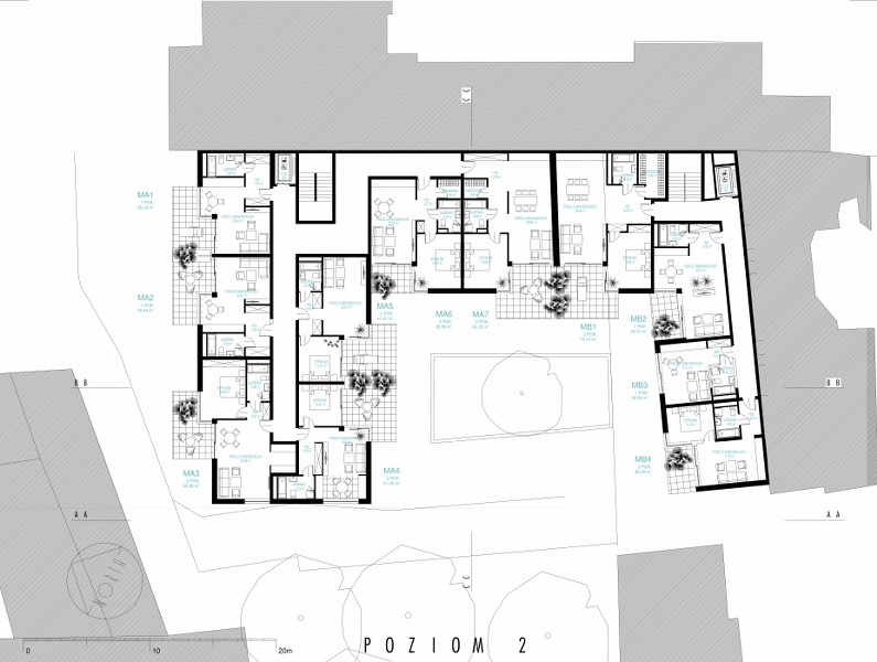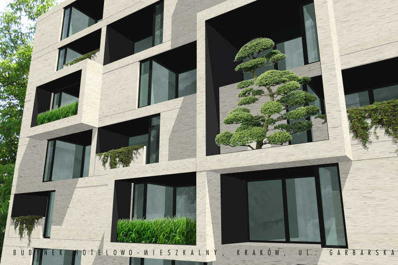 projekt budynku apartamentowego w zabudowie uzupełniającej; Kraków, ul. Garbarska