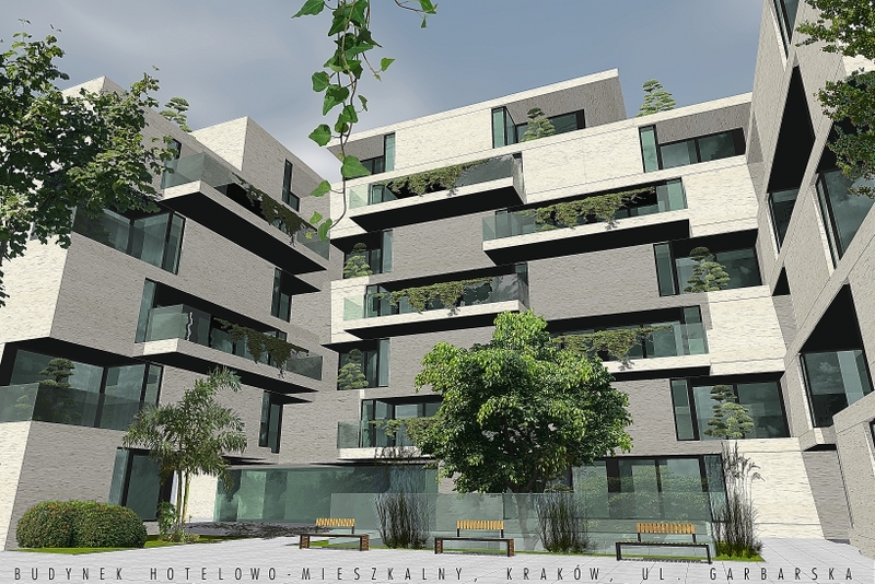 projekt budynku apartamentowego w zabudowie uzupełniającej; Kraków, ul. Garbarska